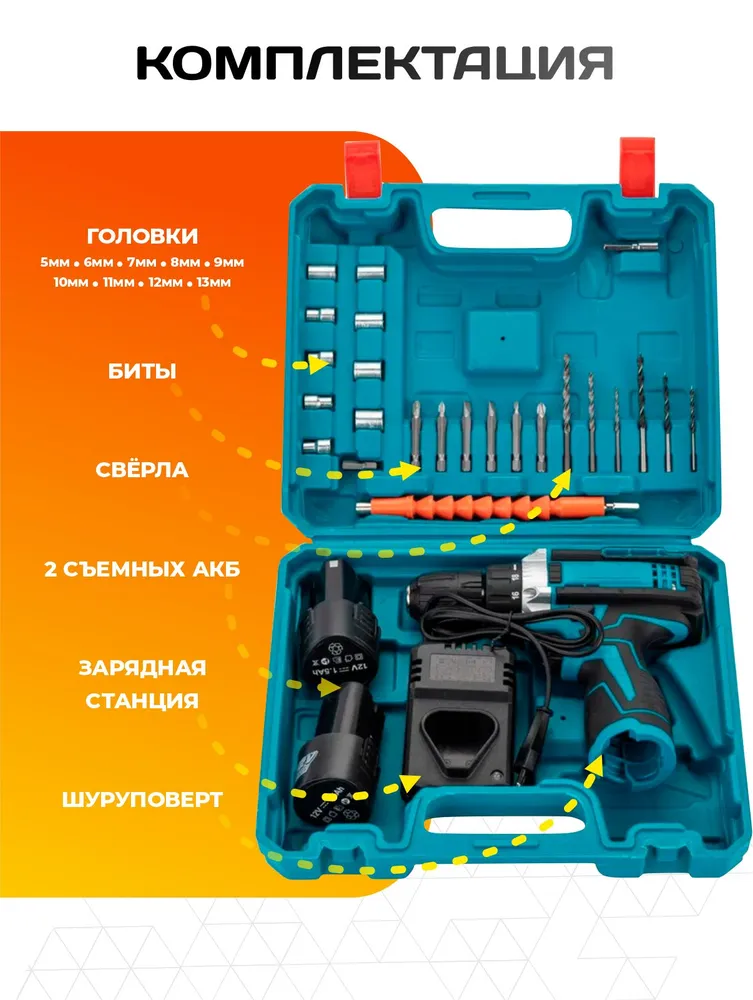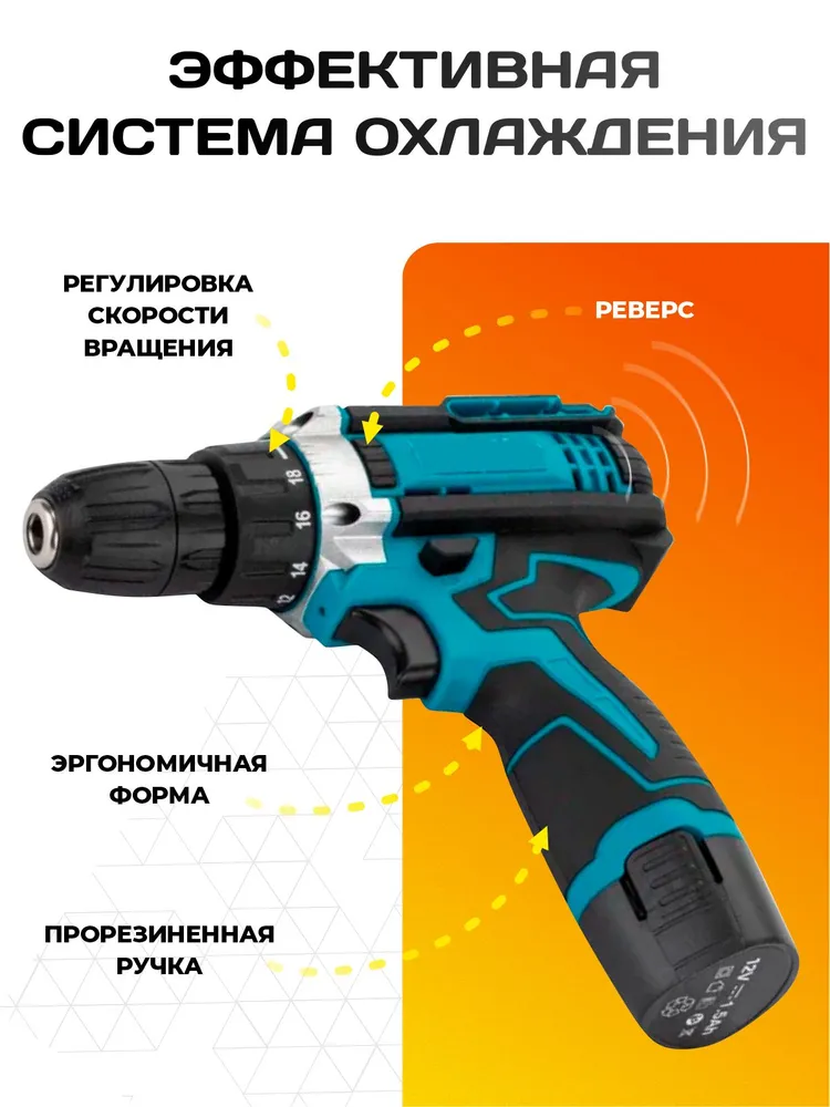 Шуруповерт аккумуляторный, 12v, 2 АКБ и кейс в комплекте