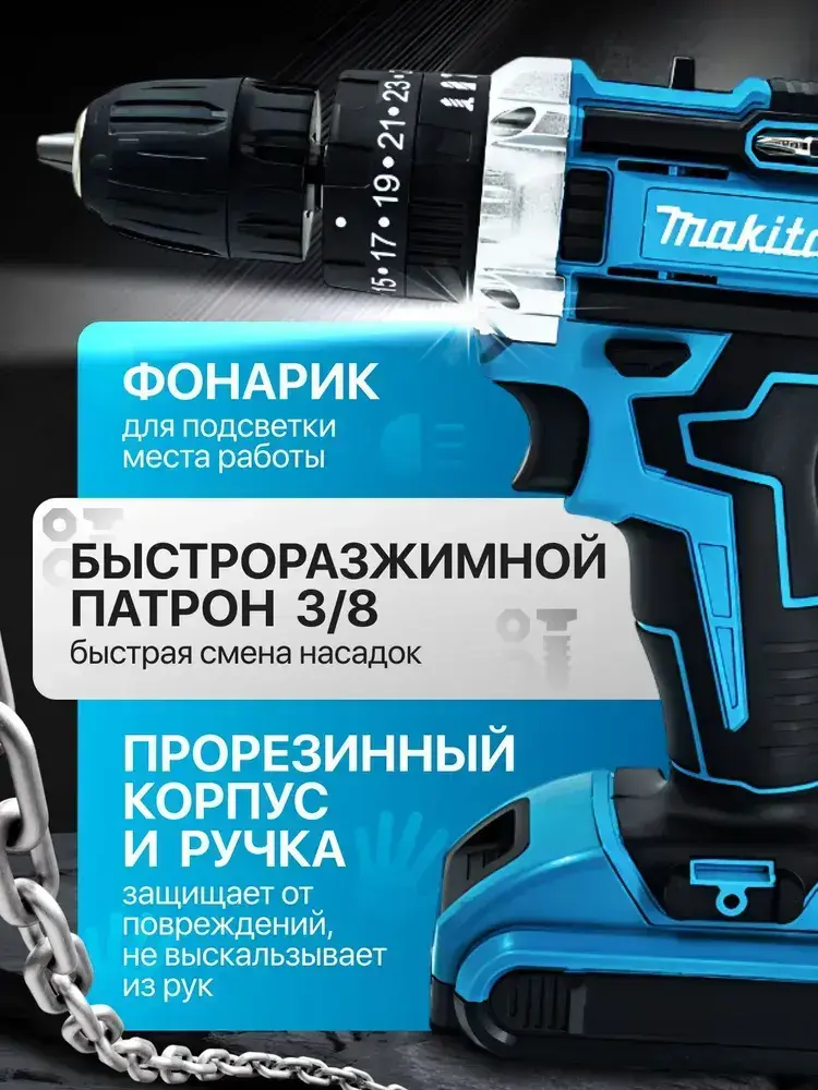 шуруповерт аккумуляторный, 2 АКБ, с кейсом