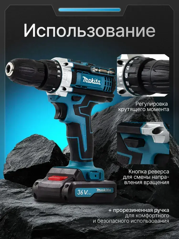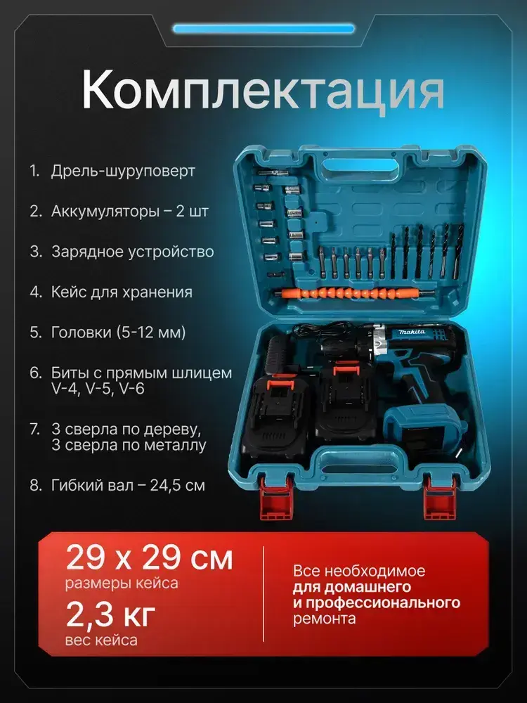 Шуруповерт аккумуляторный, 36V 2 АКБ , 24 насадки, кейс в наборе
