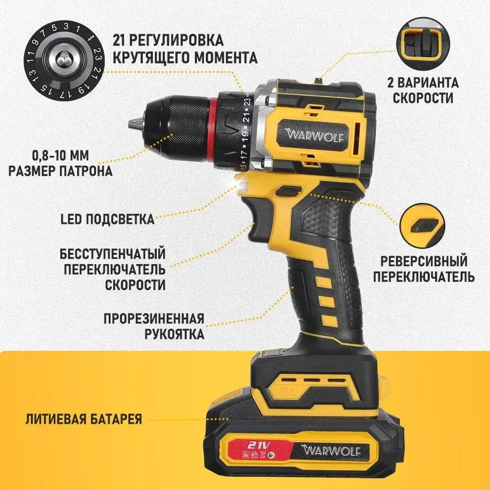шуруповерт аккумуляторный бесщеточный , дрель шуруповерт аккумуляторная с 2АКБ