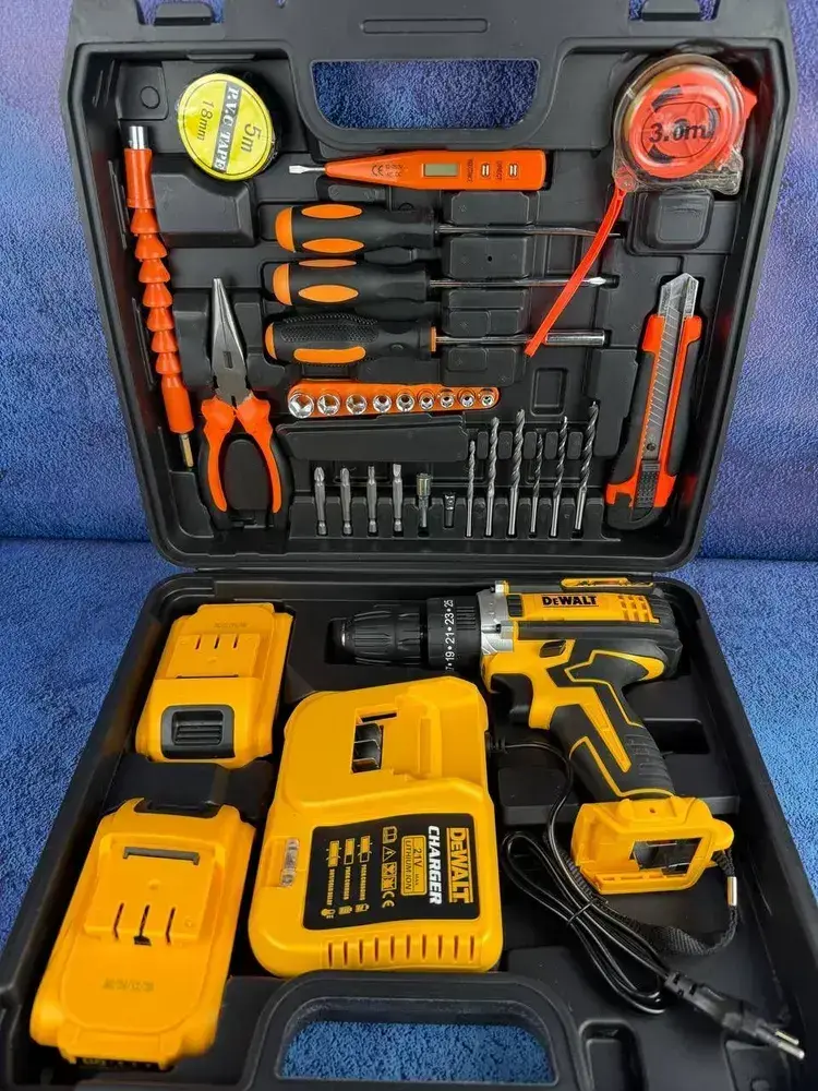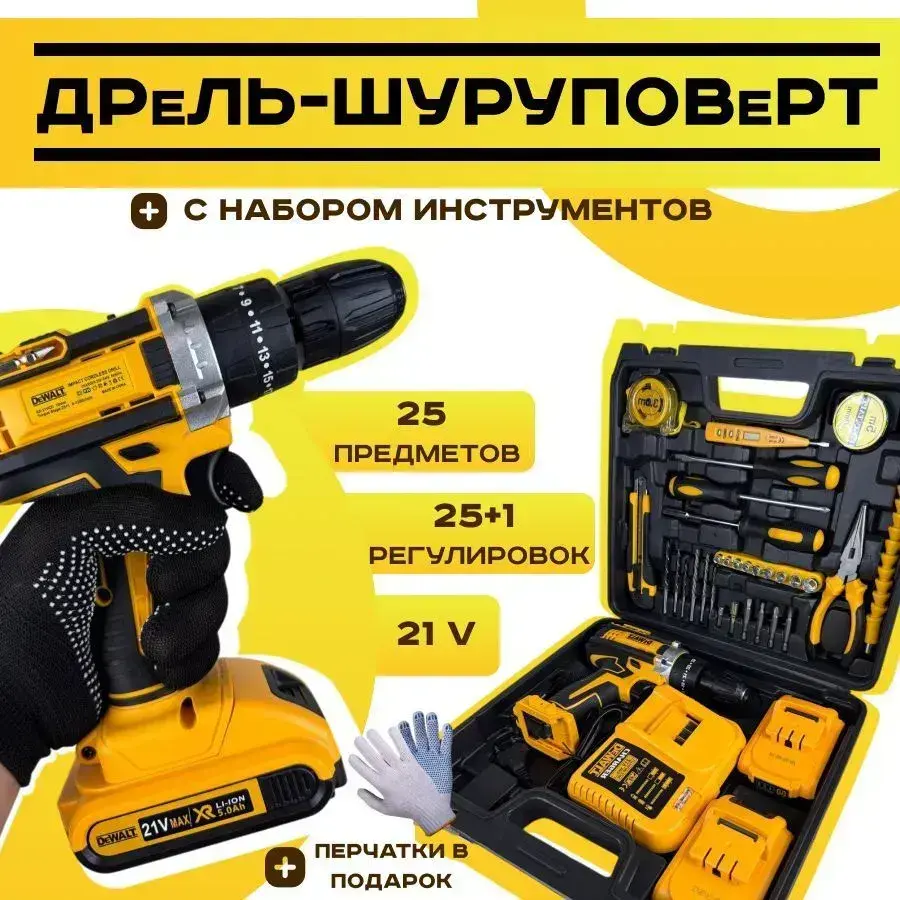 Шуруповерт аккумуляторный Dewalt 21V, 2 АКБ, Дрель-шуруповерт Деволт с набором инструментов