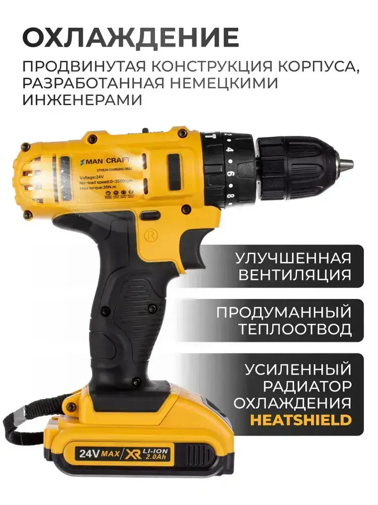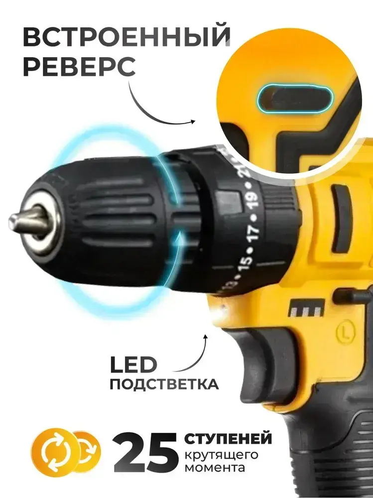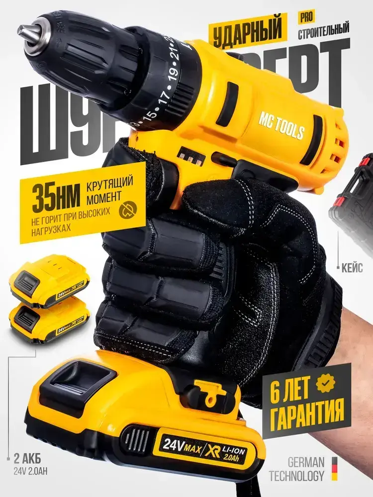 Шуруповерт аккумуляторный / Дрель-шуруповерт аккумуляторная ударная электрическая 24 В, 35 Нм, 3500 об/мин, в кейсе