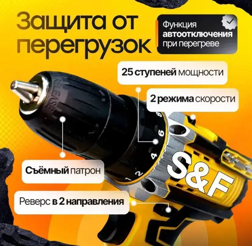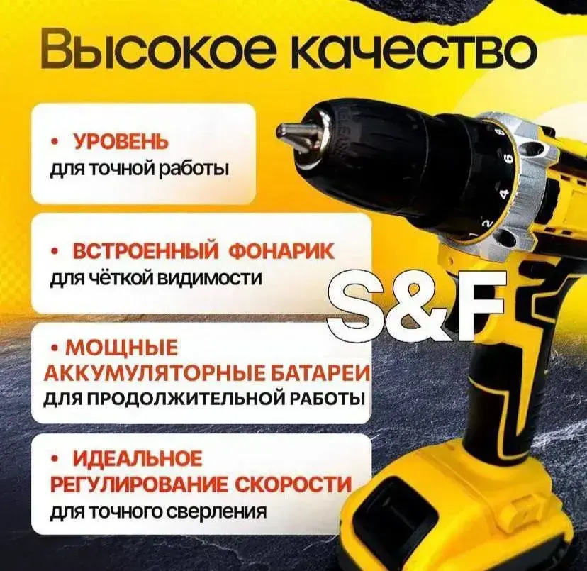 Шуруповерт аккумуляторный / Дрель-шуруповерт аккумуляторный в кейсе с набором бит и сверл