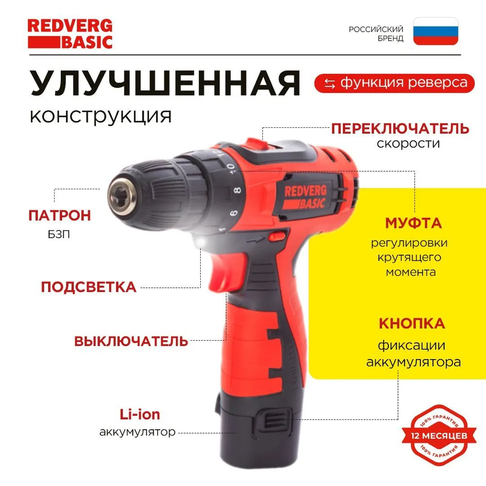 Шуруповерт аккумуляторный REDVERG Basic SD12LE/2-2