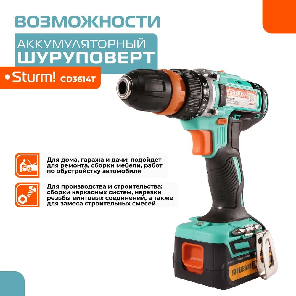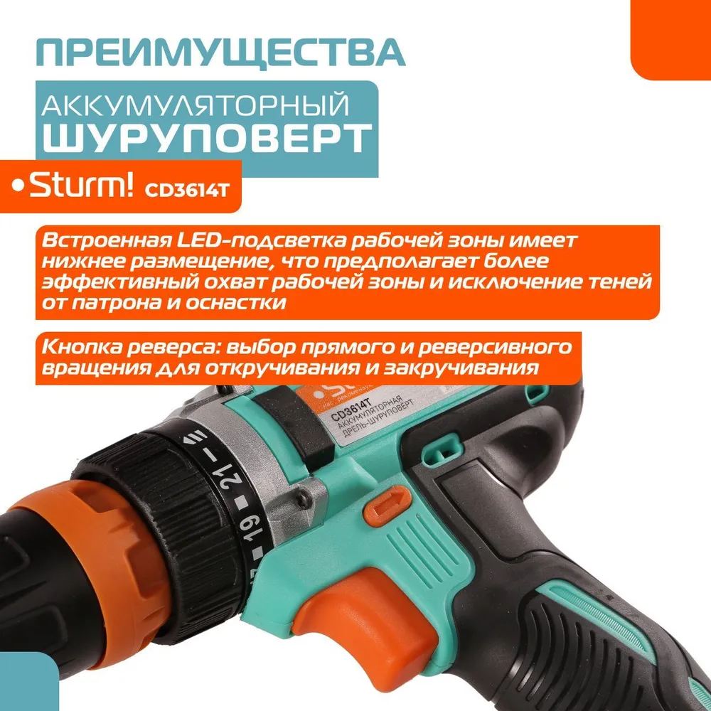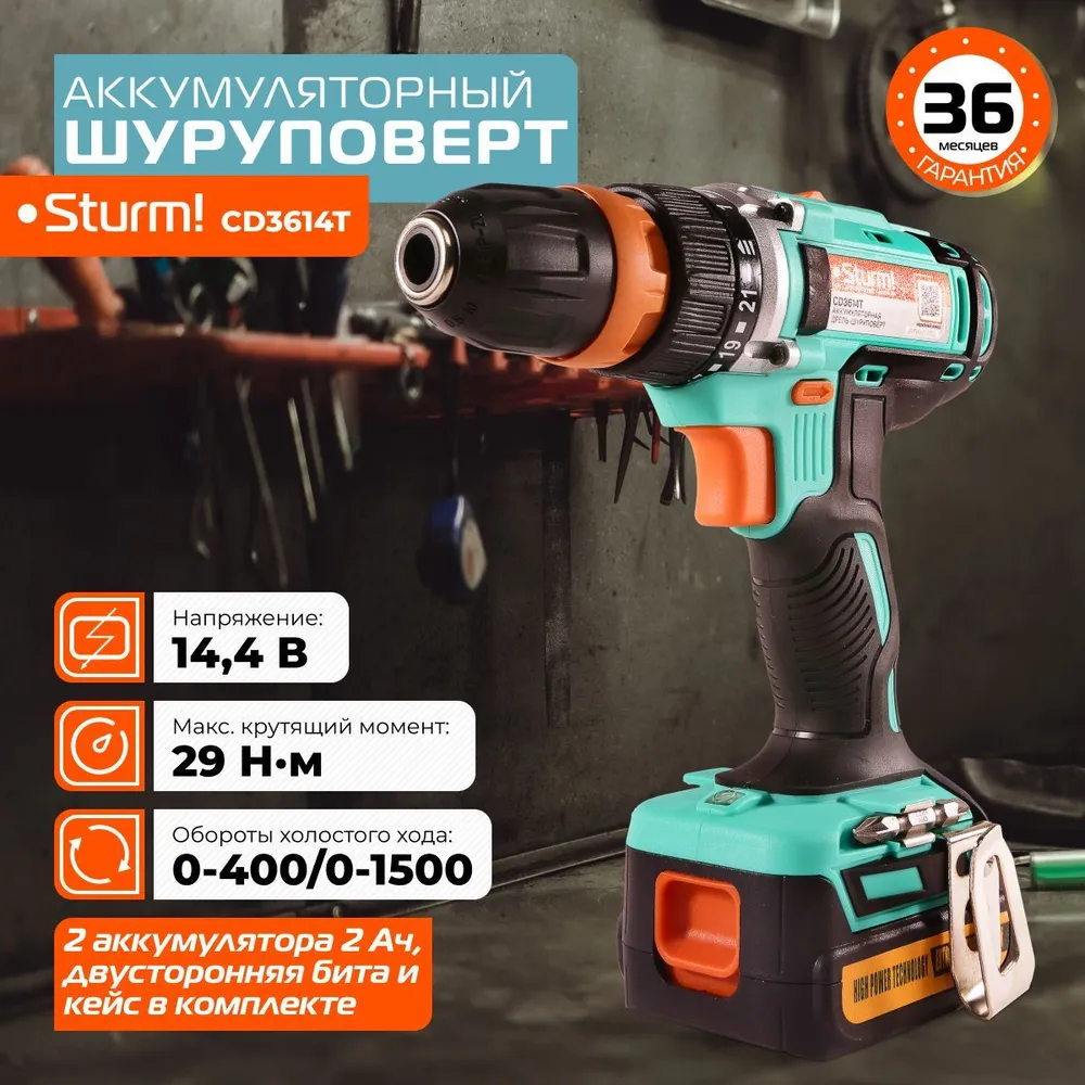 Шуруповерт аккумуляторный Sturm!,14 В, 2х2,0 Ач, съемный патрон, кейс