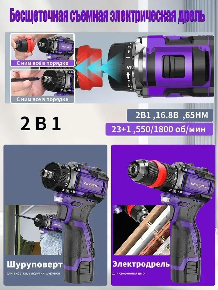 Шуруповерт бесщеточный,16.8В,65Нм,2АКБ,2.0Ач,шуруповерт аккумуляторный бесщеточный