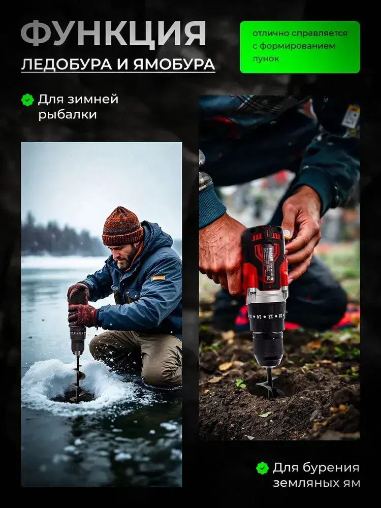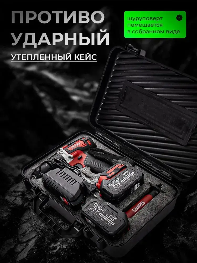 Шуруповерт дрель аккумуляторный бесщеточный ударный DeMak 21В , в кейсе, 2 АКБ 4 а/ч, многофункциональный 120 H/M для сверления, долбления, закручивания, Шуруповерт для ледобура ДеМак