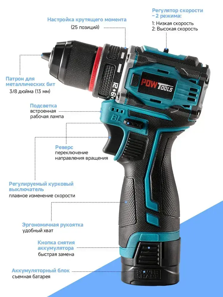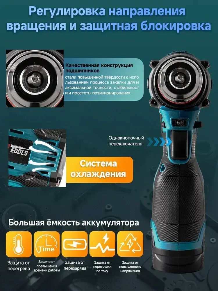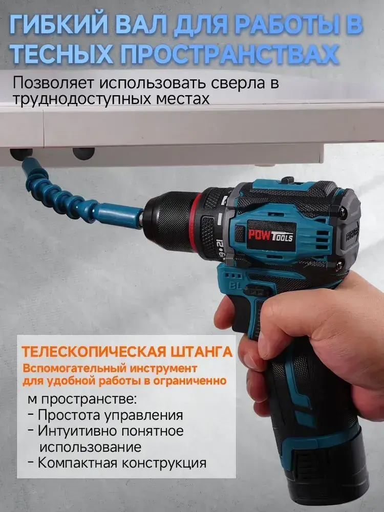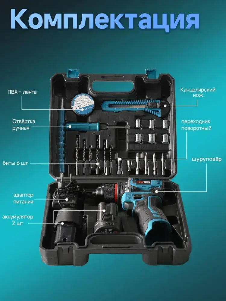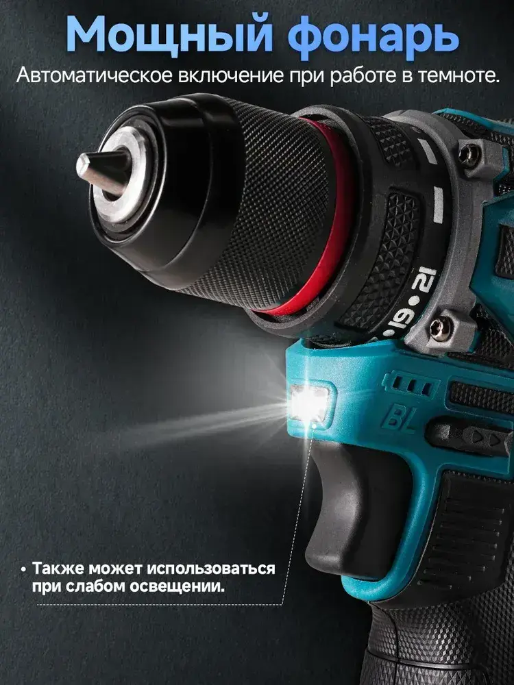 Шуруповёрт аккумуляторный бесщеточный 60 Нм, 16.8В, 2 АКБ Li-ion, 2 скорости