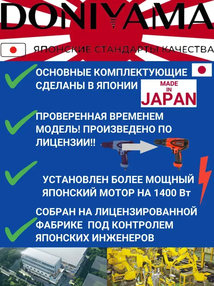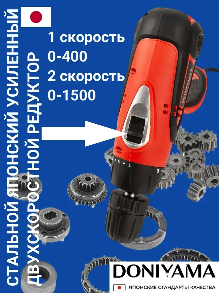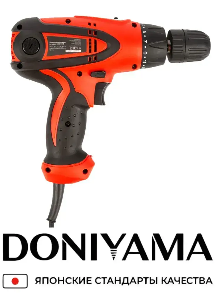 Шуруповёрт / дрель - шуруповёрт DONIYAMA 1400 Вт ДВУХСКОРОСТНОЙ УСИЛЕННЫЙ СТАЛЬНОЙ РЕДУКТОР