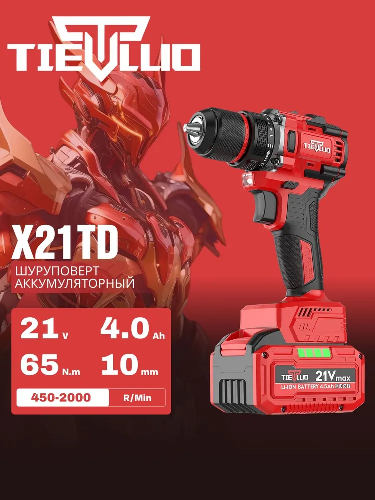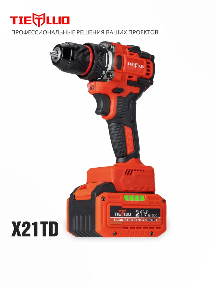 Шуруповёрт TIELLIO X21TD 21В, 65Нм, бесщеточный, 2 АКБ 2А ч, кейс