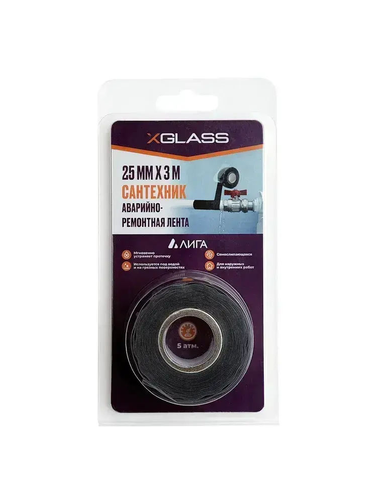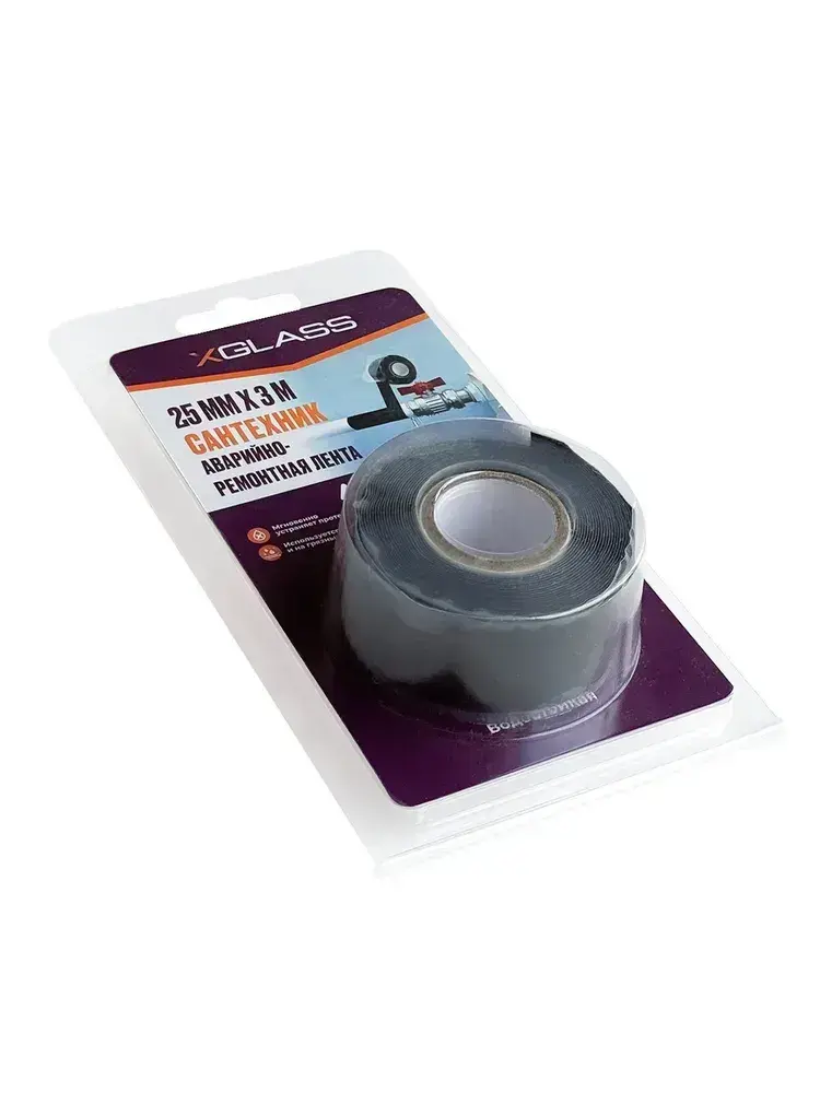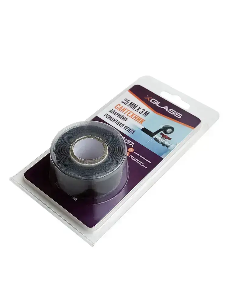Силиконовая самослипающаяся лента САНТЕХНИК чёрная 25мм х 3м XGLASS