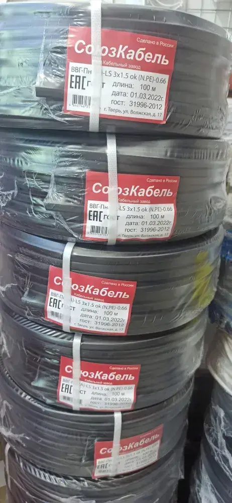 Силовой кабель ВВГнг(A)-LS-П 3 x 1.5 мм², 100 м, 7000 г