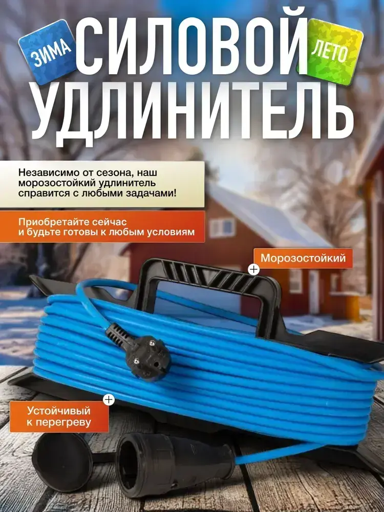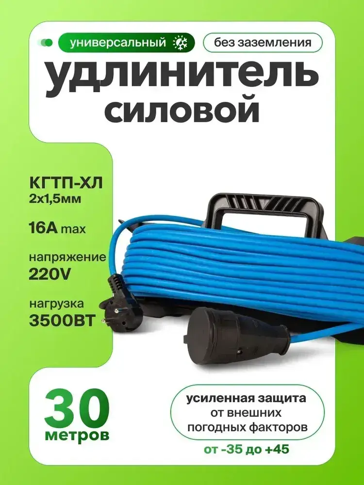 Силовой уличный удлинитель строительный на рамке Кг 2х1,5 мм 30 метров для гирлянд, газонокосилки и триммеров