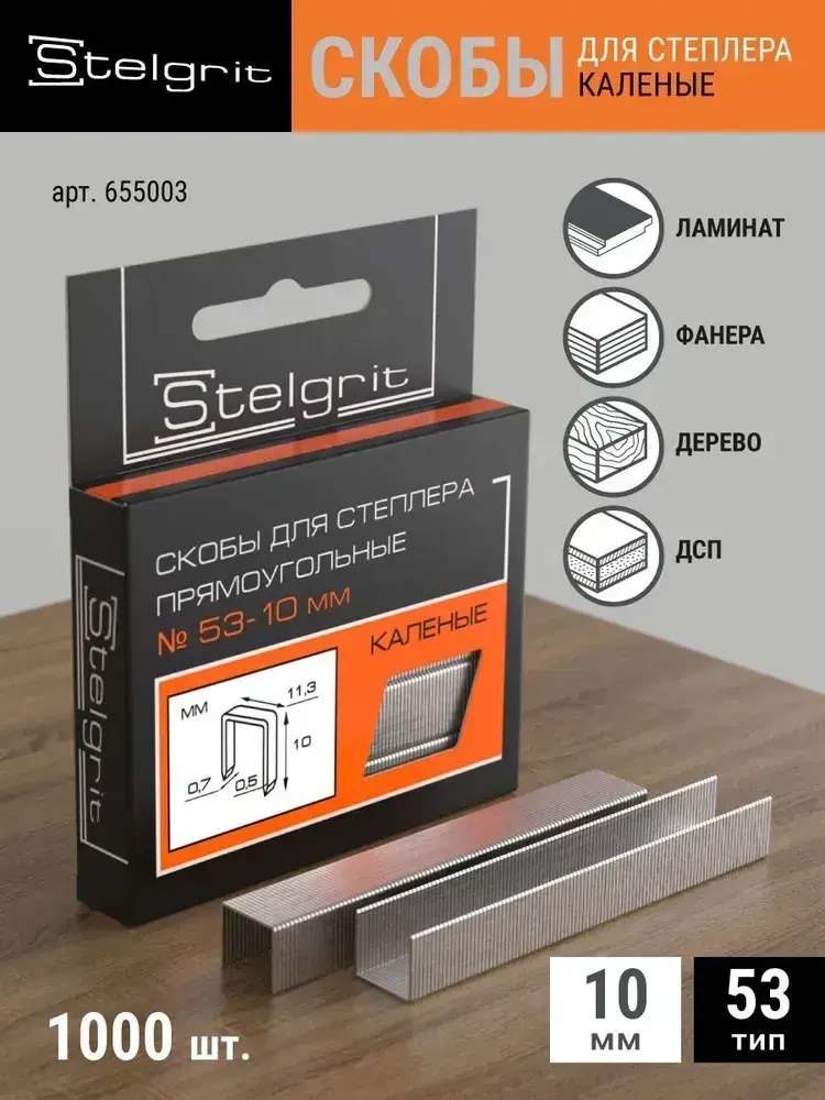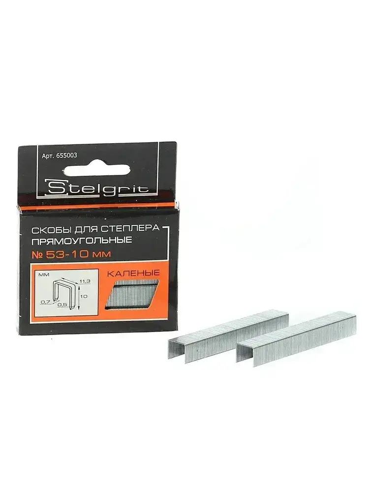 Скобы Тип 53 для строительного/мебельного степлера каленые 10x0,7x11,3 мм 1000 шт Stelgrit