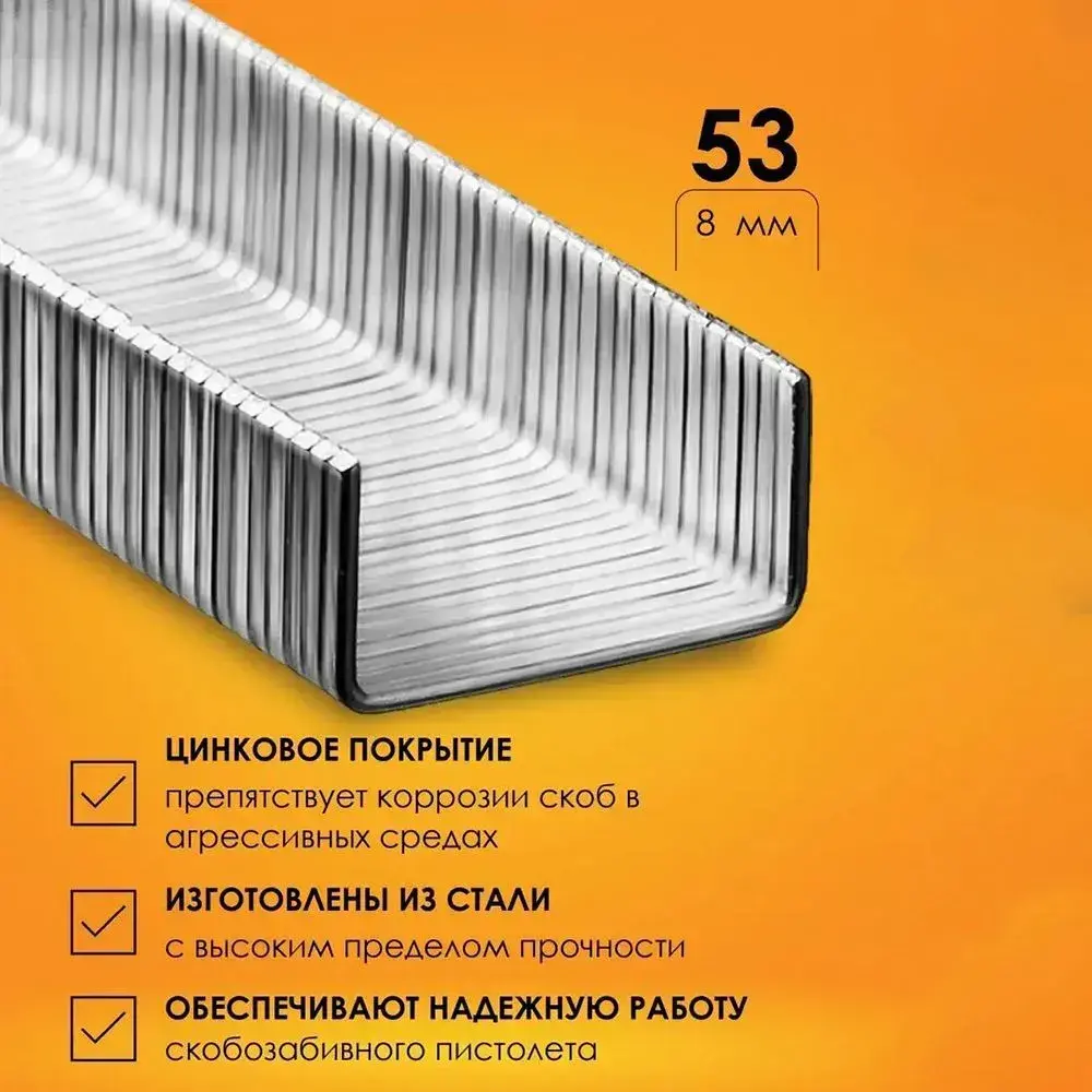 Скобы закаленные STELGRIT, для степлера строительного, мебельного, 8 мм, 1000 шт., тип J (53 тип)
