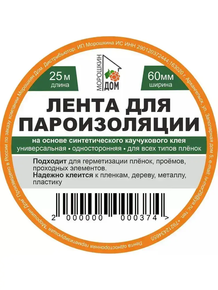 Скотч для пароизоляции 60mm*25m. Строительная лента.