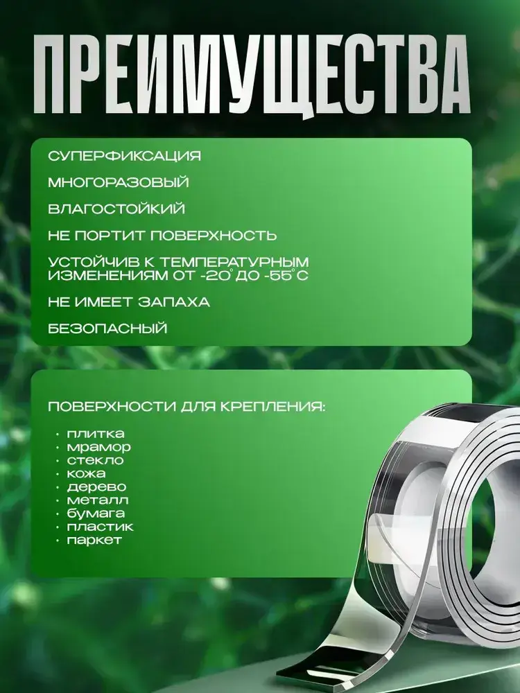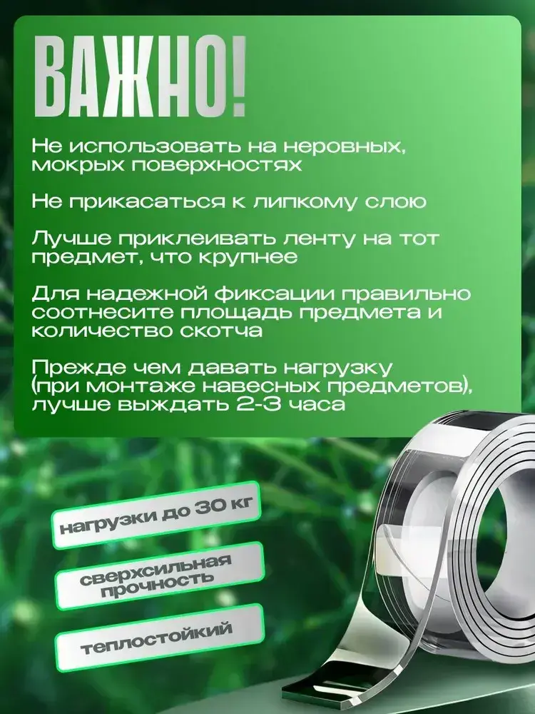 Скотч двухсторонний; Нано скотч двусторонний 5м; Клейкая нано лента