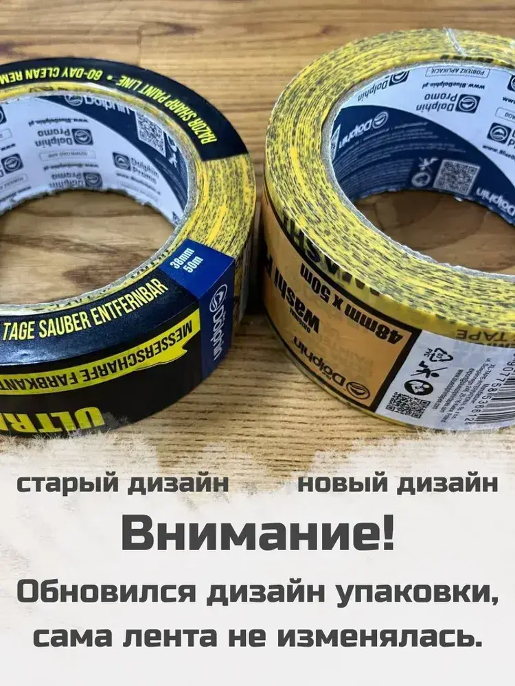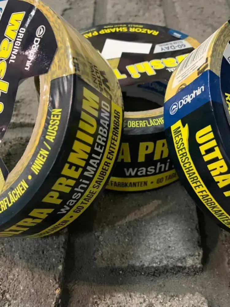 Скотч малярный (лента) на японской рисовой бумаге, Blue Dolphin WASHI (Блю Долфин), Желтый, 25мм *50м