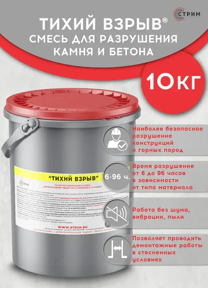 Смесь для разрушения камня и бетона / Разрушитель бетона / СТРИМ Тихий взрыв