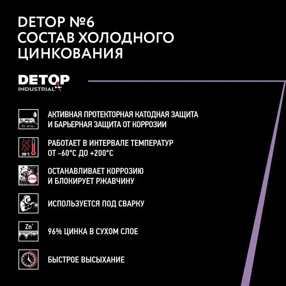 Состав холодного цинкования DETOP 6, серый, баллон аэрозоль, 650 мл