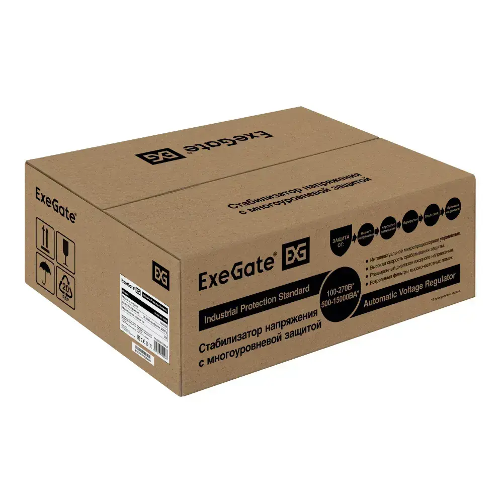 Стабилизатор напряжения настенный ExeGate Master AV-10000 (10000ВА, 140-260В, цветной дисплей, 5 уровней защиты, задержка, усиленный метал.корпус, клем.колодка+евророзетка, RTL)