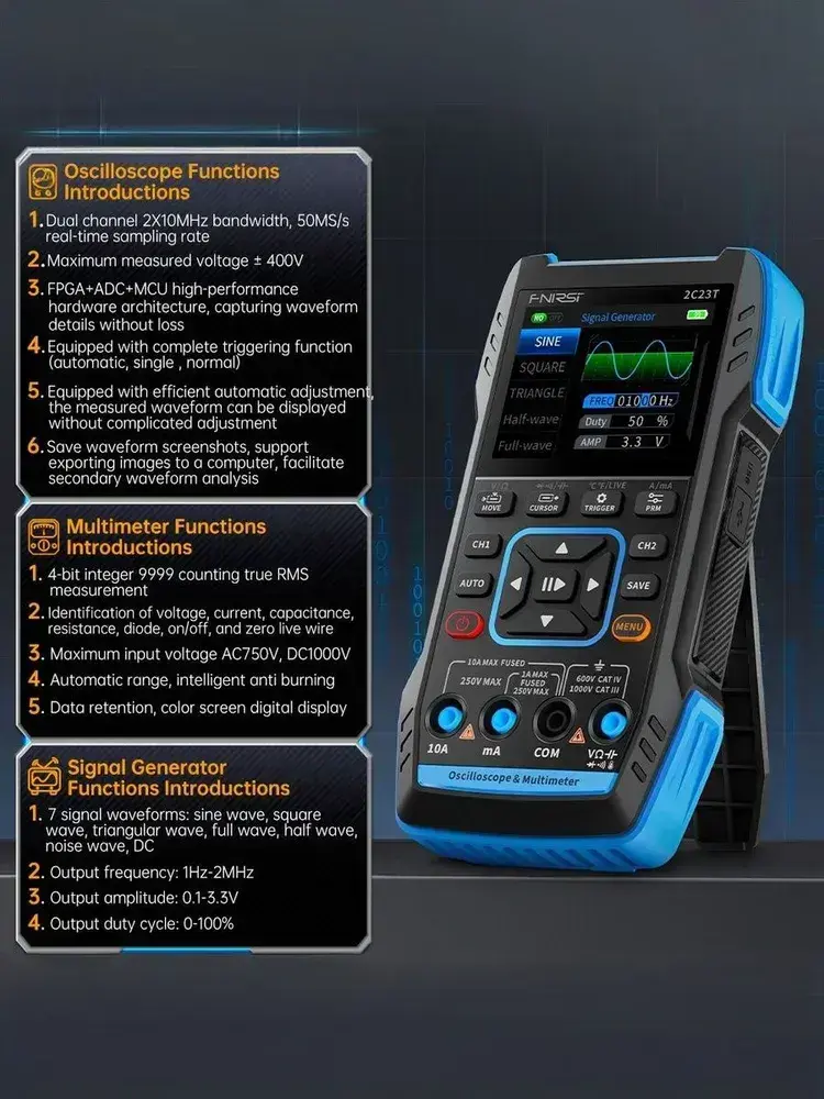 Стандартная версия двухканального устройства FNIRSI 2C23T 3-в-1 с полосой пропускания 2*10 МГц