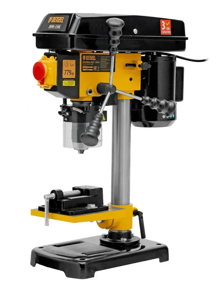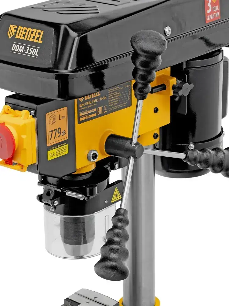 Станок сверлильный DENZEL, DDM-350L, 13 мм, 350 Вт мощность, 620-2620 об/мин и 5 скоростей, регулировка высоты стола и лазер, настольный 95321