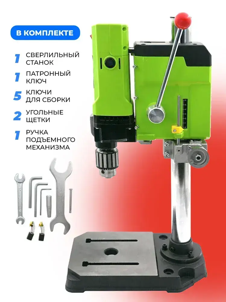 Станок сверлильный настольный BG-5157 для широкого спектра материалов, 0-800 об/мин, 1050 Вт, плавная регулировка оборотов, трехкулачковый патрон, стационарная дрель
