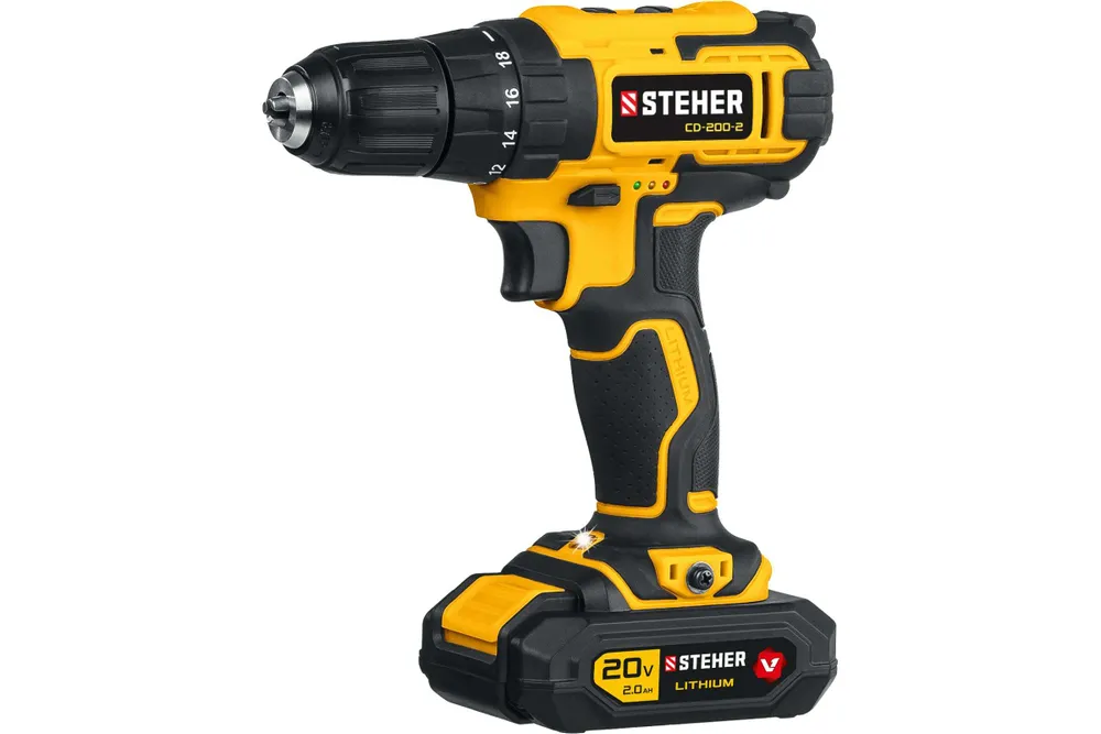 STEHER 20В, 2 АКБ (2Ач), в кейсе, дрель-шуруповерт. CD-200-2