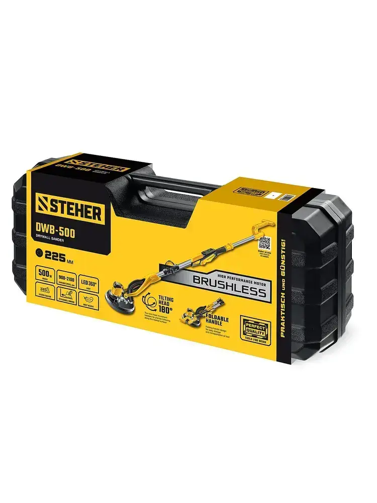 STEHER d225 мм, 500 Вт, подсветка, бесщеточная шлифовальная машина для стен (жираф), кейс (DWB-500)