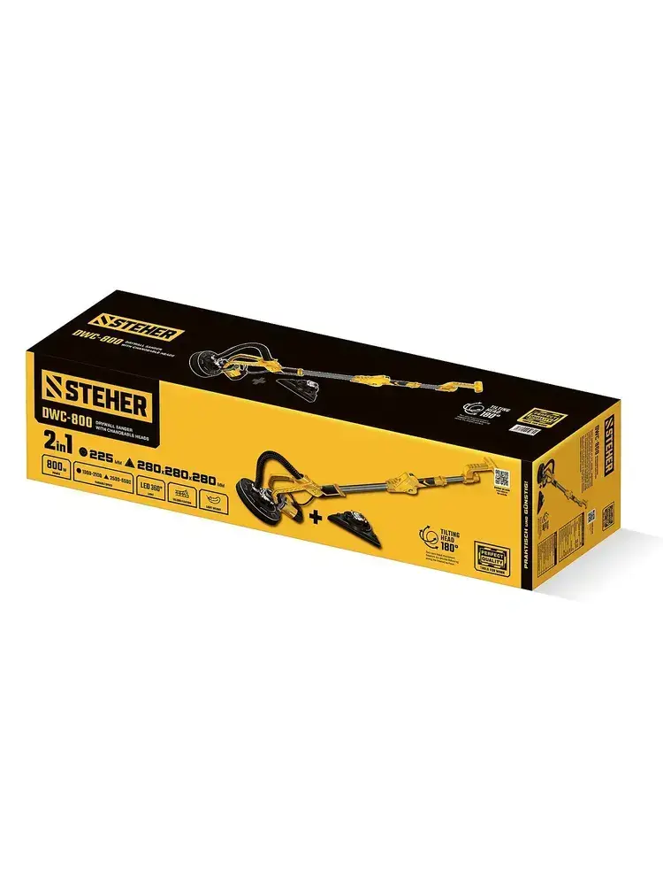 STEHER d225 мм, 800 Вт, сменные основания, подсветка, шлифовальная машина для стен (жираф) (DWC-800)