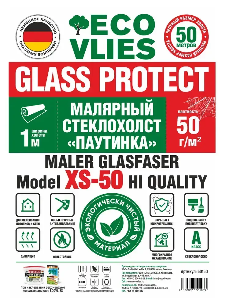 Стеклохолст Малярный (паутинка) ECOVLIES (Экофлиз) GLASS PROTECT 50г/м2х50м