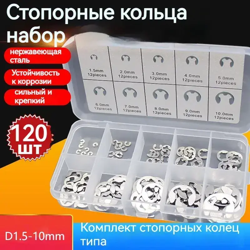 Стопорные кольца набор 120 шт, E-Clip , 1.5-10mm