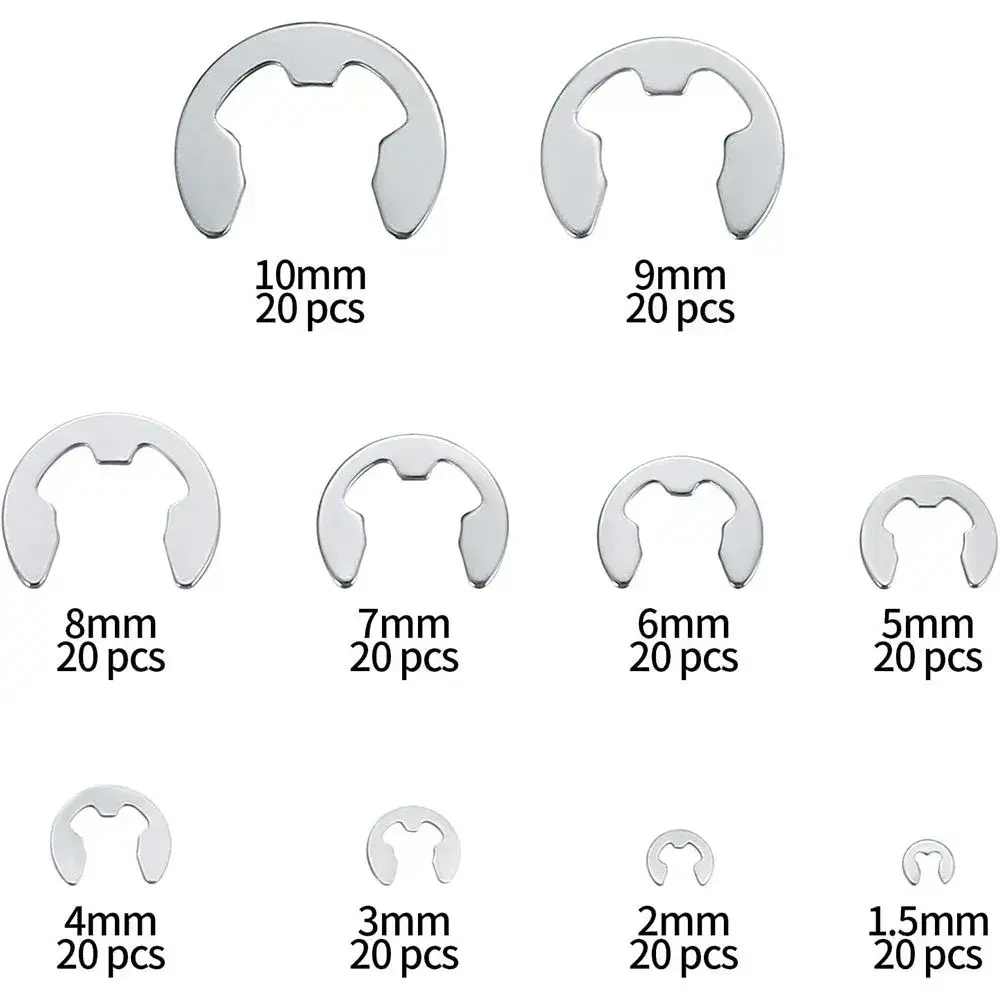 Стопорные кольца набор 1.5-10 мм (200 шт) внутренние и наружные