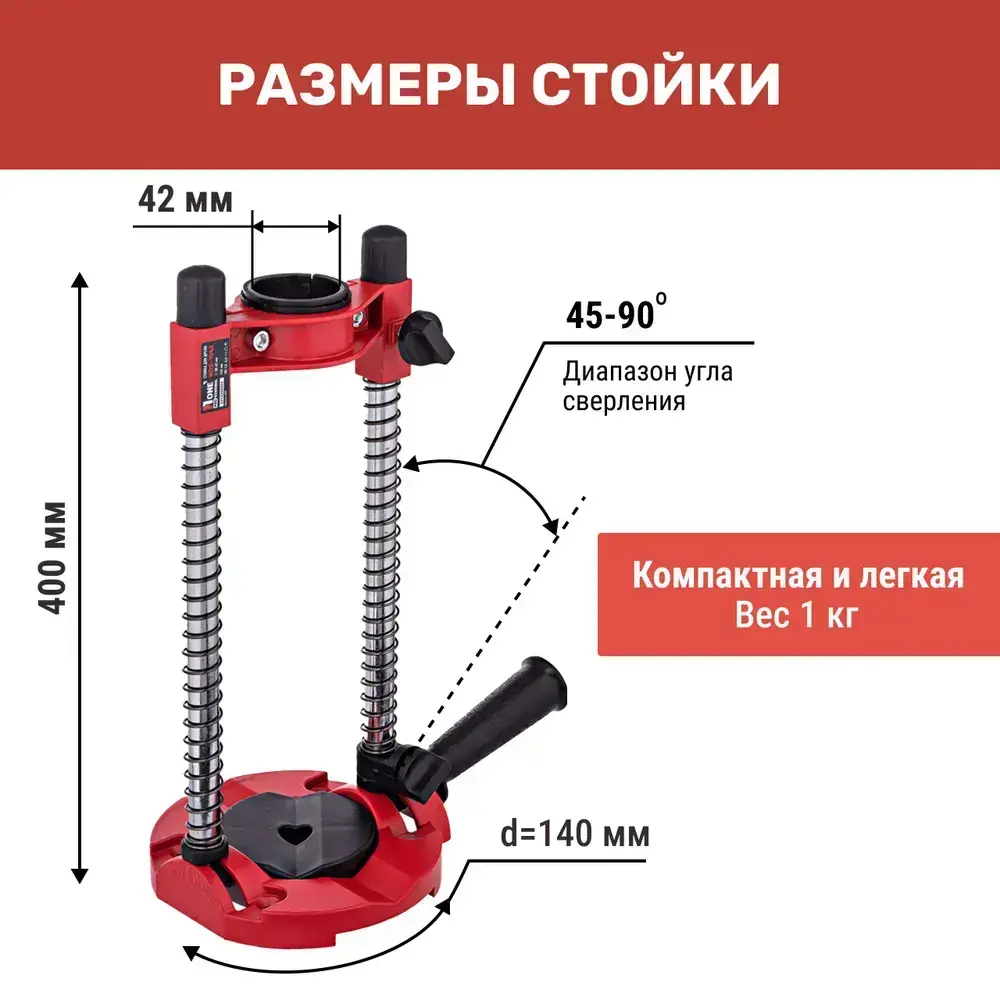 Стойка для дрели NUMBER ONE NDS-1042, диаметр 38-42 мм, глубина 145мм, ограничитель, алюминивое основание