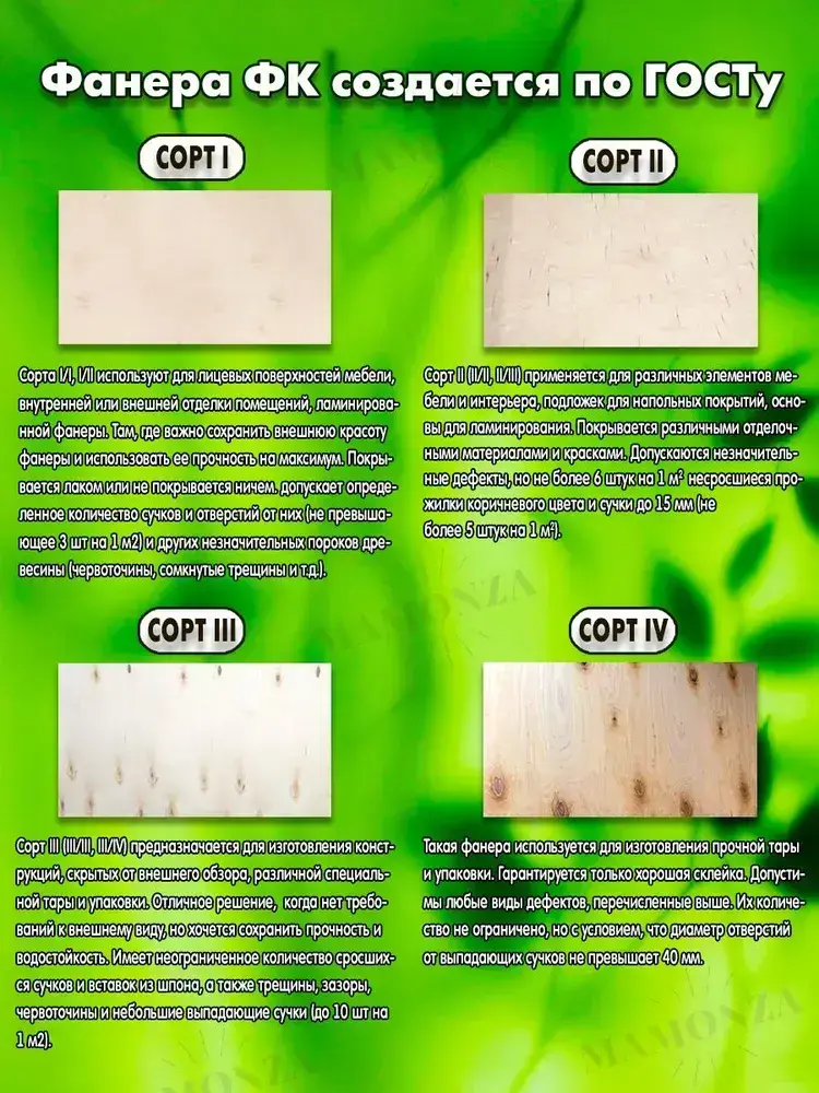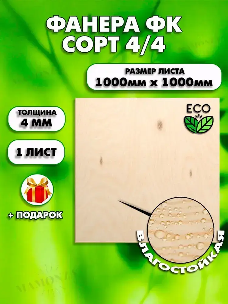 Строительная Фанера для мебели, Размер 1000х1000, 1 лист, Толщина 4мм, сорт 4/4