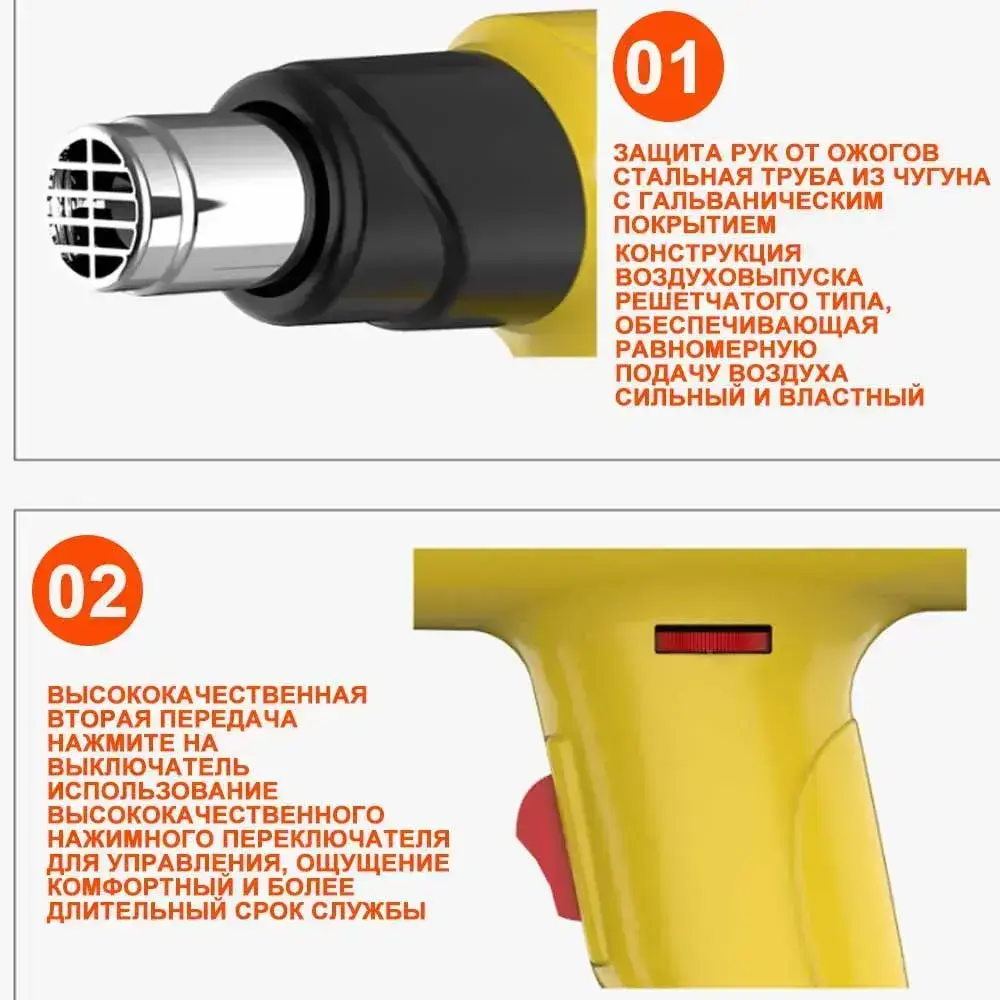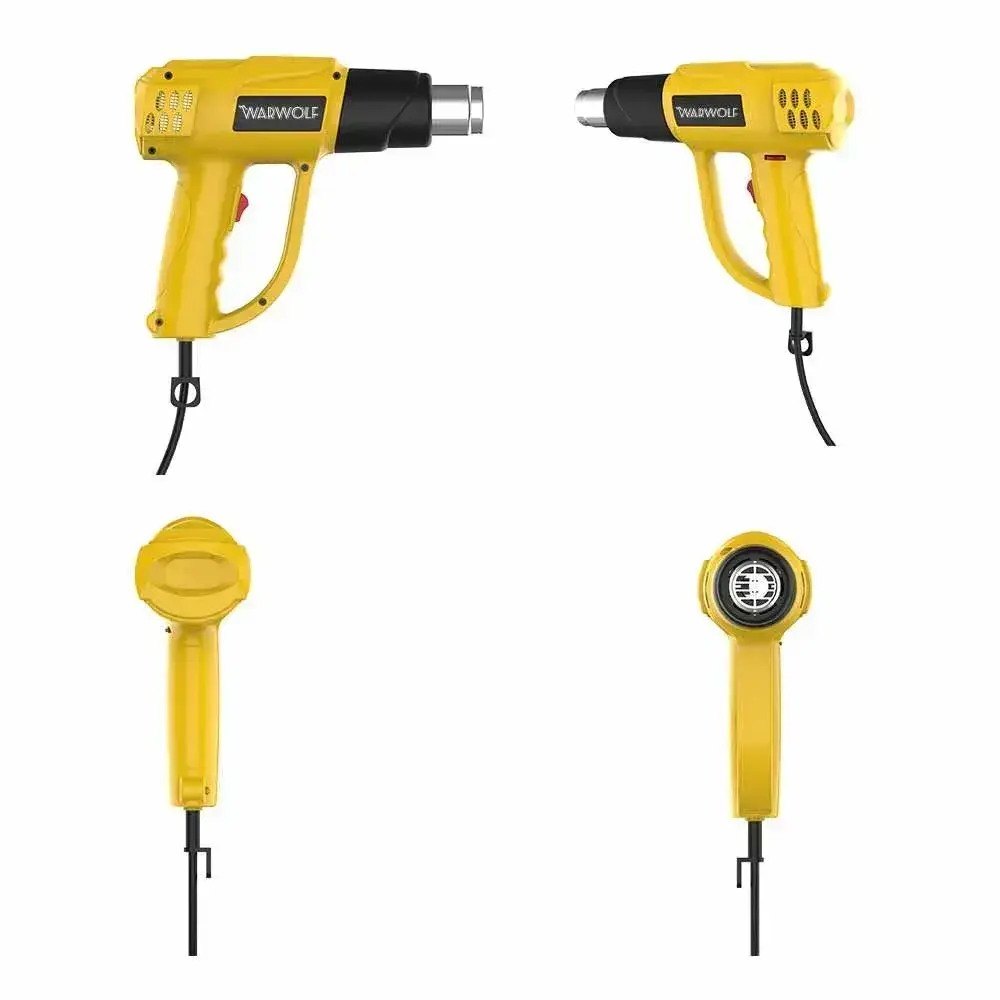 Строительный фен / Промышленный фен Warwolf / Бесступенчатый термостат /2000 Вт/Ручная регулировка, 4 насадки (2 кВт, 300-500 л/мин, 60-600 градусов), профиссиональная серия