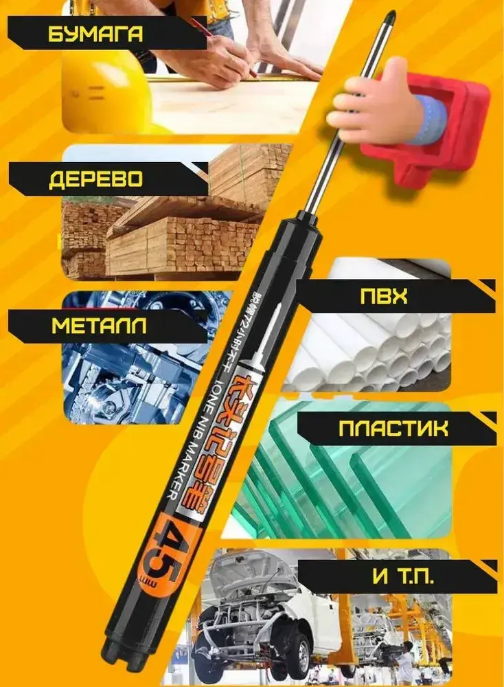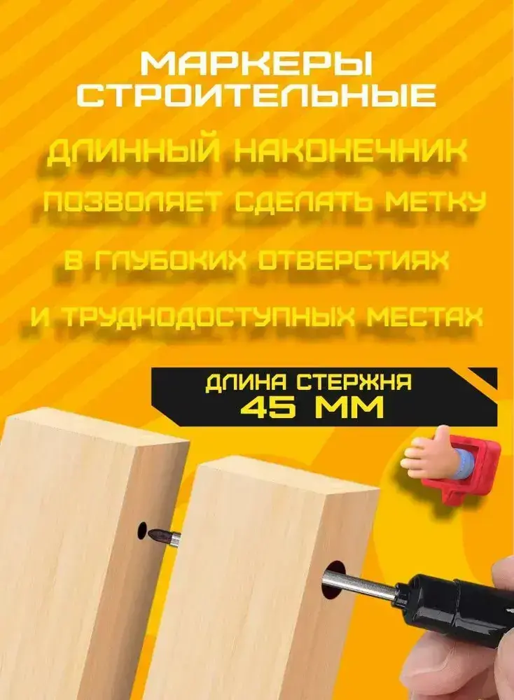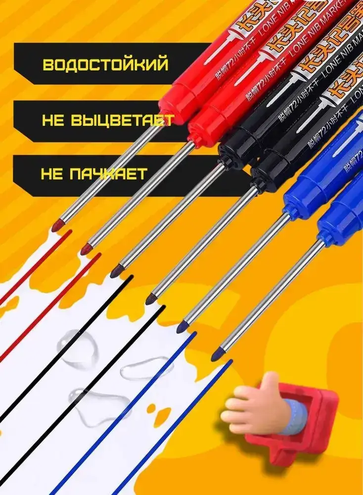Строительный маркер - с удлинённым наконечником 45 мм (3 шт. чёрный/красный/синий)