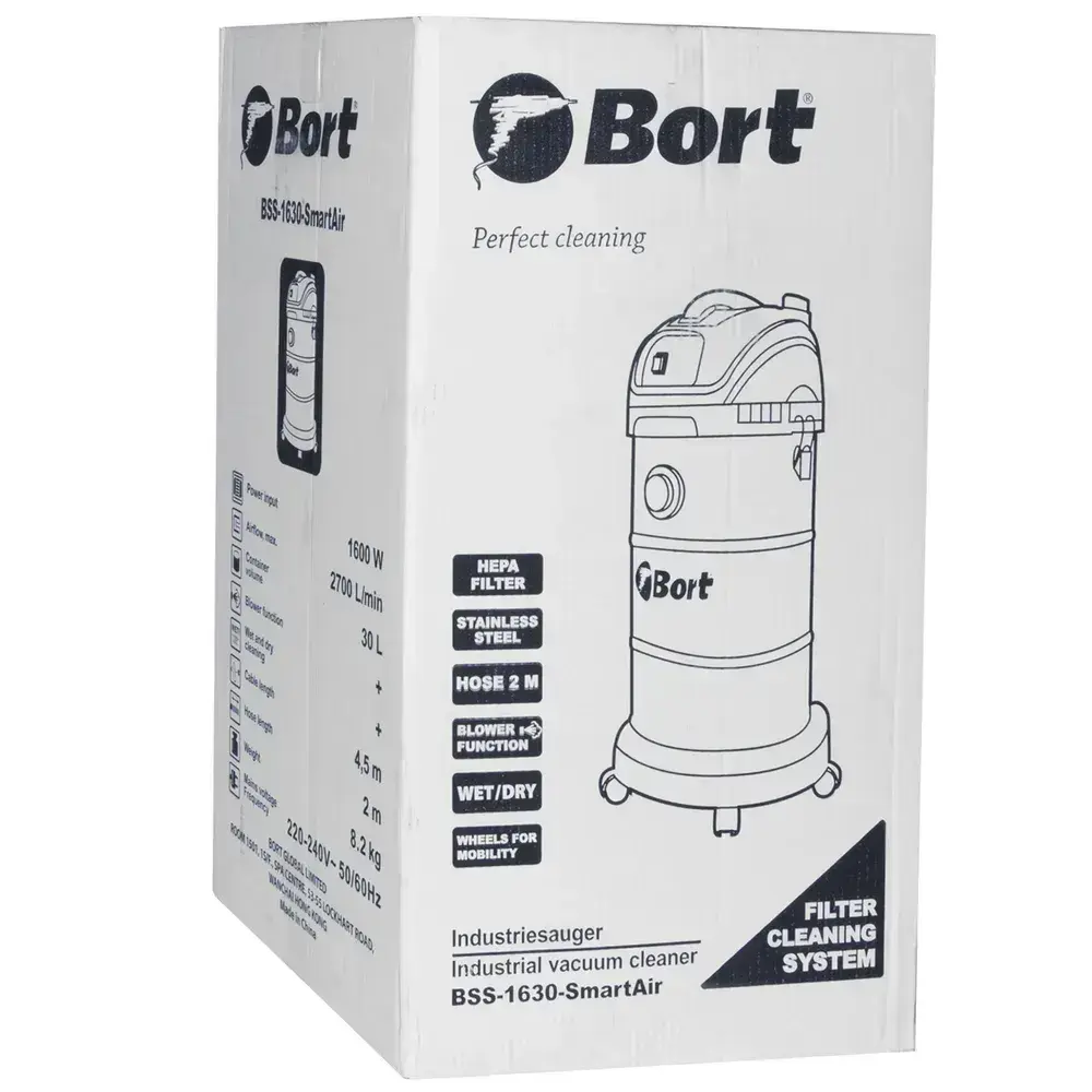 Строительный пылесос BORT BSS-1630-SmartAir, 320 Вт, 30 л, полуавтоматическая очистка фильтра, шланг 3 м, розетка