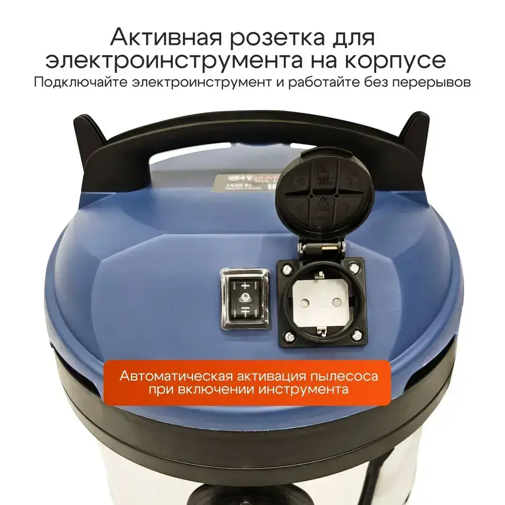 Строительный пылесос, промышленный, электрический Hitman( 1600 Вт, 30 литров,сухая/влажная уборка )