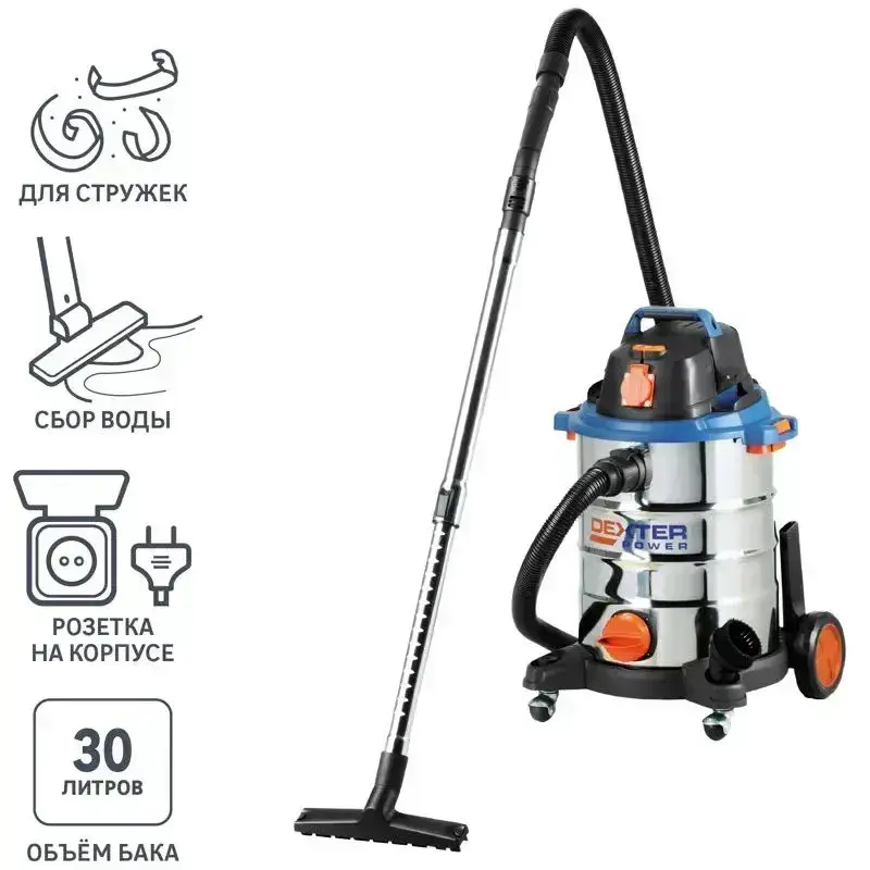 Строительный пылесос с розеткой Dexter VOD1530SWC 1500Вт 30л