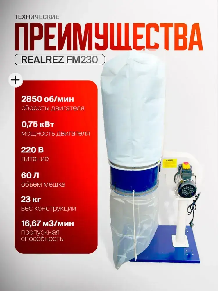 Стружкоотсос (промышленный пылесос) REALREZ FM230/220В, 750 Вт