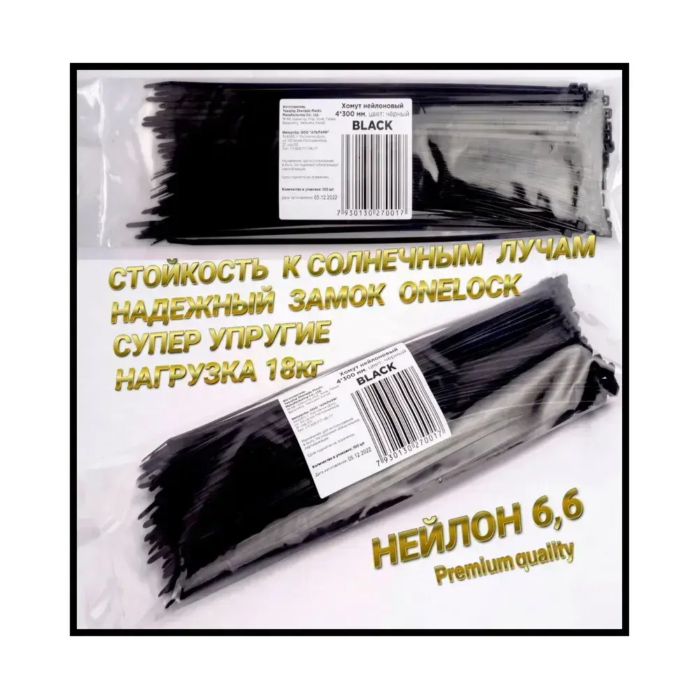 Стяжка 4мм x 300мм от 1мм до 80мм, 100 шт., Нейлон, Пластик