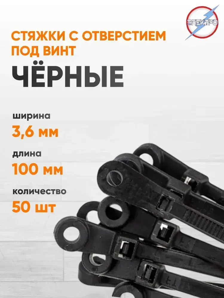 Стяжка черная с отверстием под винт 3,6х100 Электро (уп. 50шт.)
