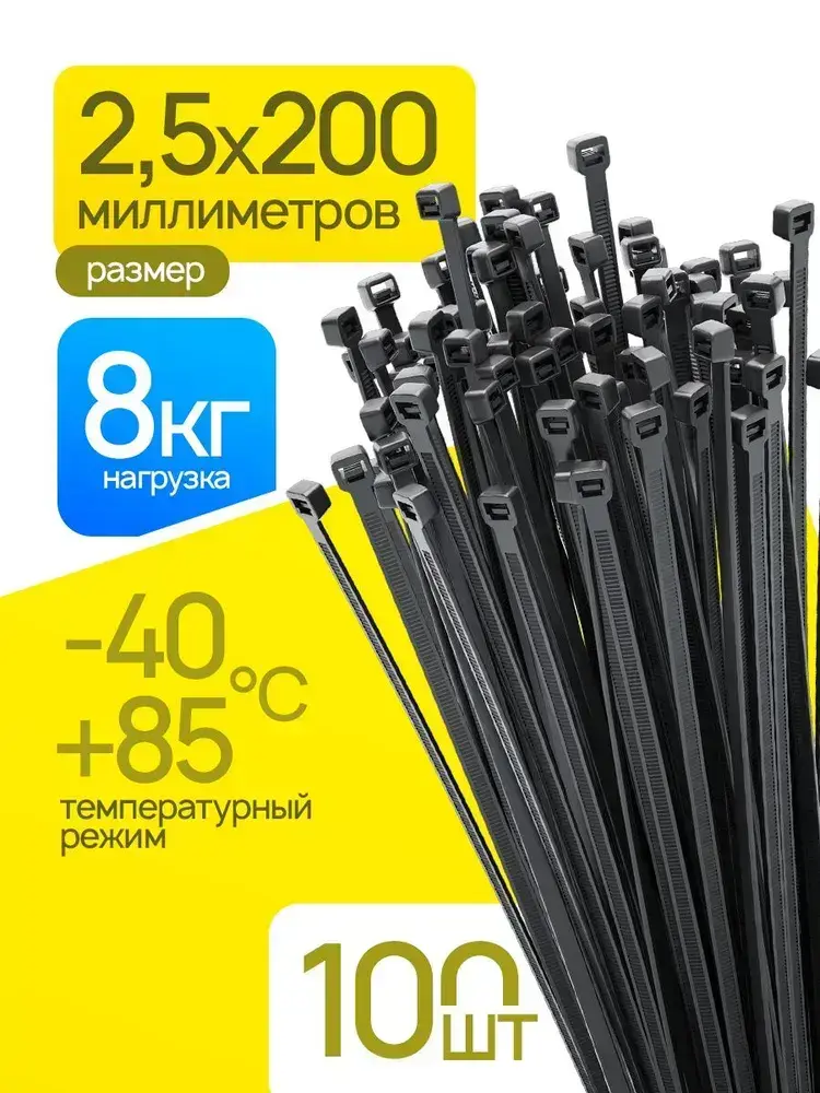 Стяжка (хомут) нейлоновая пластиковая, крепеж 2,5х200мм
