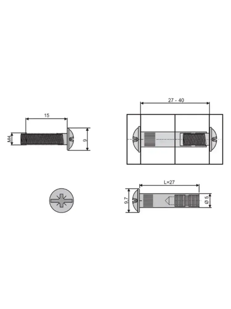 Стяжка межсекционная мебельная М4 х 27 мм / 10 штук