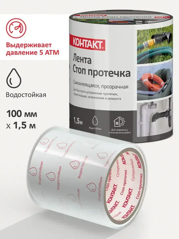 Супер фикс лента КОНТАКТ, ремонтная водонепроницаемая клейкая лента 1,5м