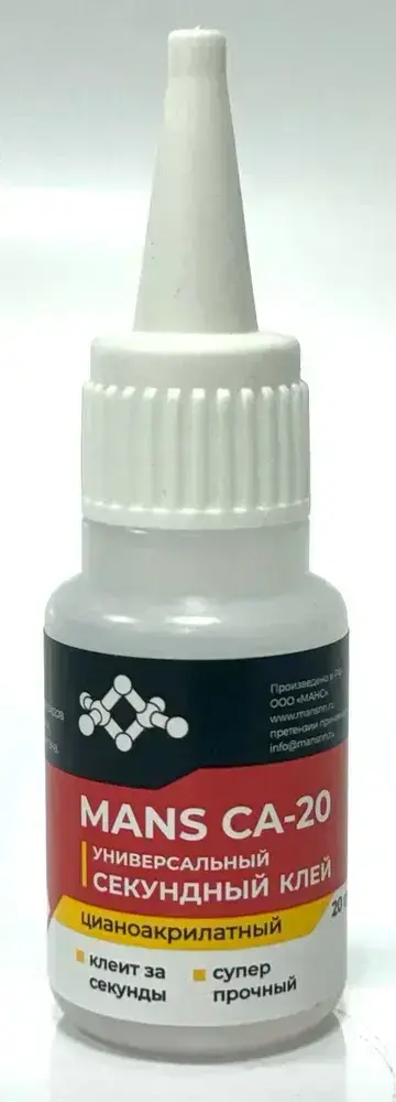 Супер клей CA-20 (космофен, cosmofen CA-500.200) MANS клей универсальный цианоакрилатный влагостойкий суперклей секундный, 20 гр