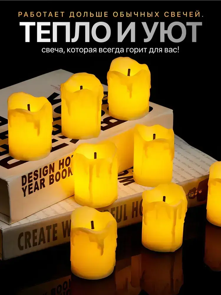Свеча светодиодная, эффект оплавленного воска, 4 штуки