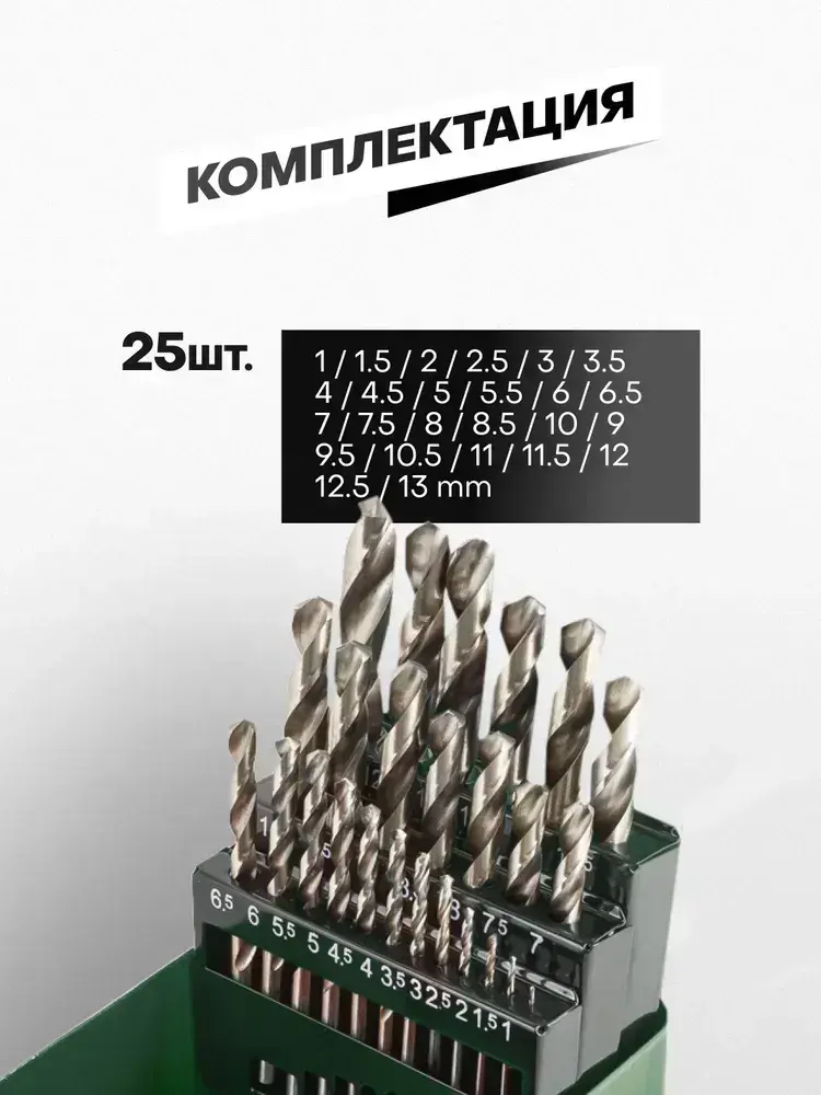 Сверла по металлу HSS 4241 набор, 25 предметов